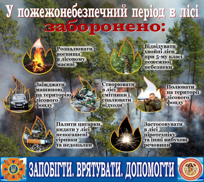 Більшість лісових пожеж виникає через людський фактор: порушення правил протипожежної безпеки, недостатній контроль за дітьми збоку дорослих, тощо. Як наслідок, гинуть люди, руйнується екосистема, завдаються матеріальні збитки.